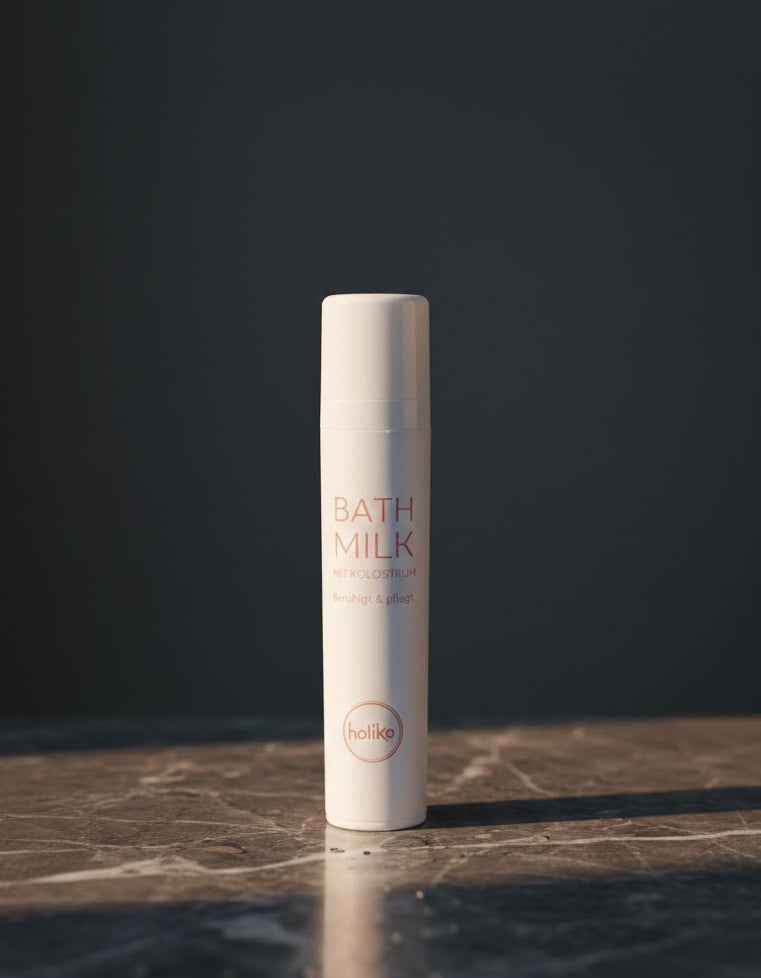 Die Holiko Bademilch ist eine reichhaltige, beruhigende Pflege, die direkt ins Badewasser gegeben wird. Sie unterstützt die Haut, wenn sie trocken, schuppig oder irritiert ist, und sorgt für ein ausgeglichenes Hautgefühl. Die Kombination aus regenerierendem Kolostrum, hautberuhigendem Nachtkerzenöl und barrierestärkendem Avocadoöl versorgt die Haut mit wichtigen Nährstoffen, lindert Spannungsgefühle und unterstützt eine widerstandsfähige Hautbarriere.